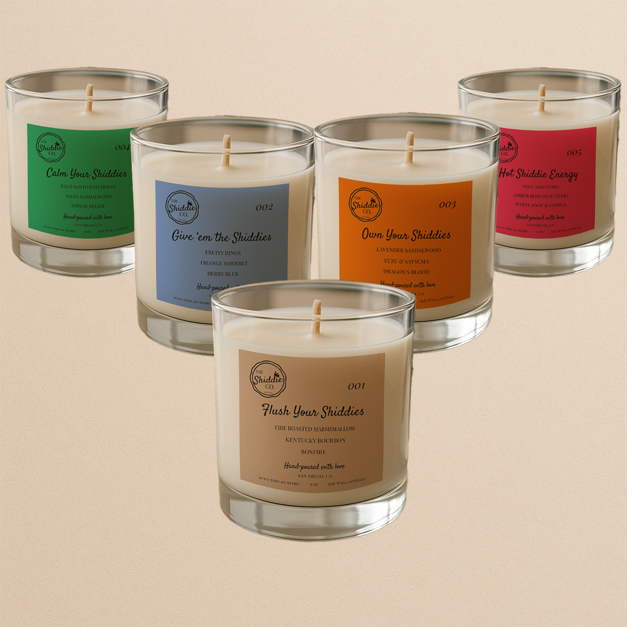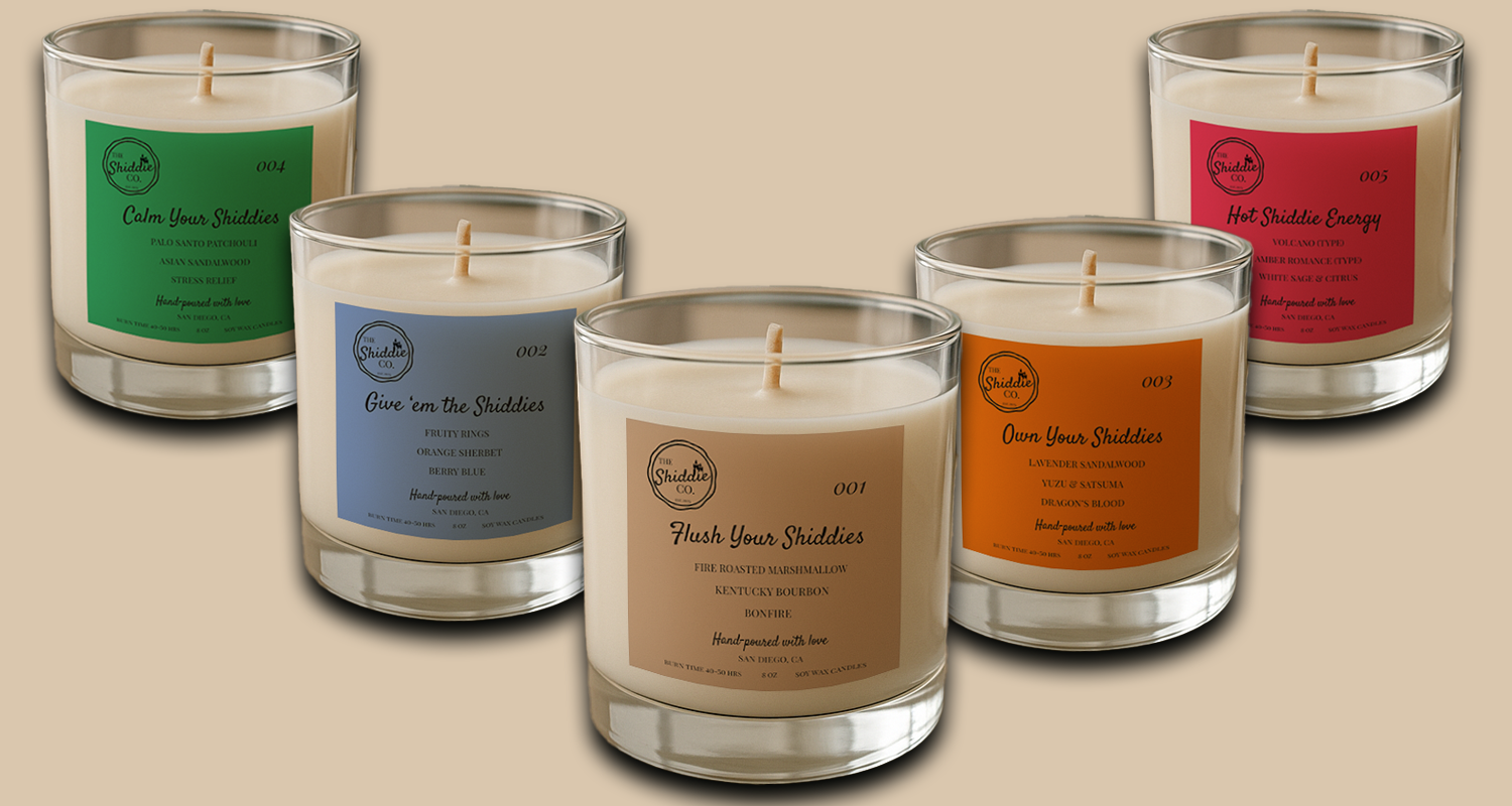 Because sometimes life's little shiddies really stink! But seriously, during those shiddie moments, these candles give you an opportunity to turn it all into a good smell and a fun time. Check out the About page for more information.